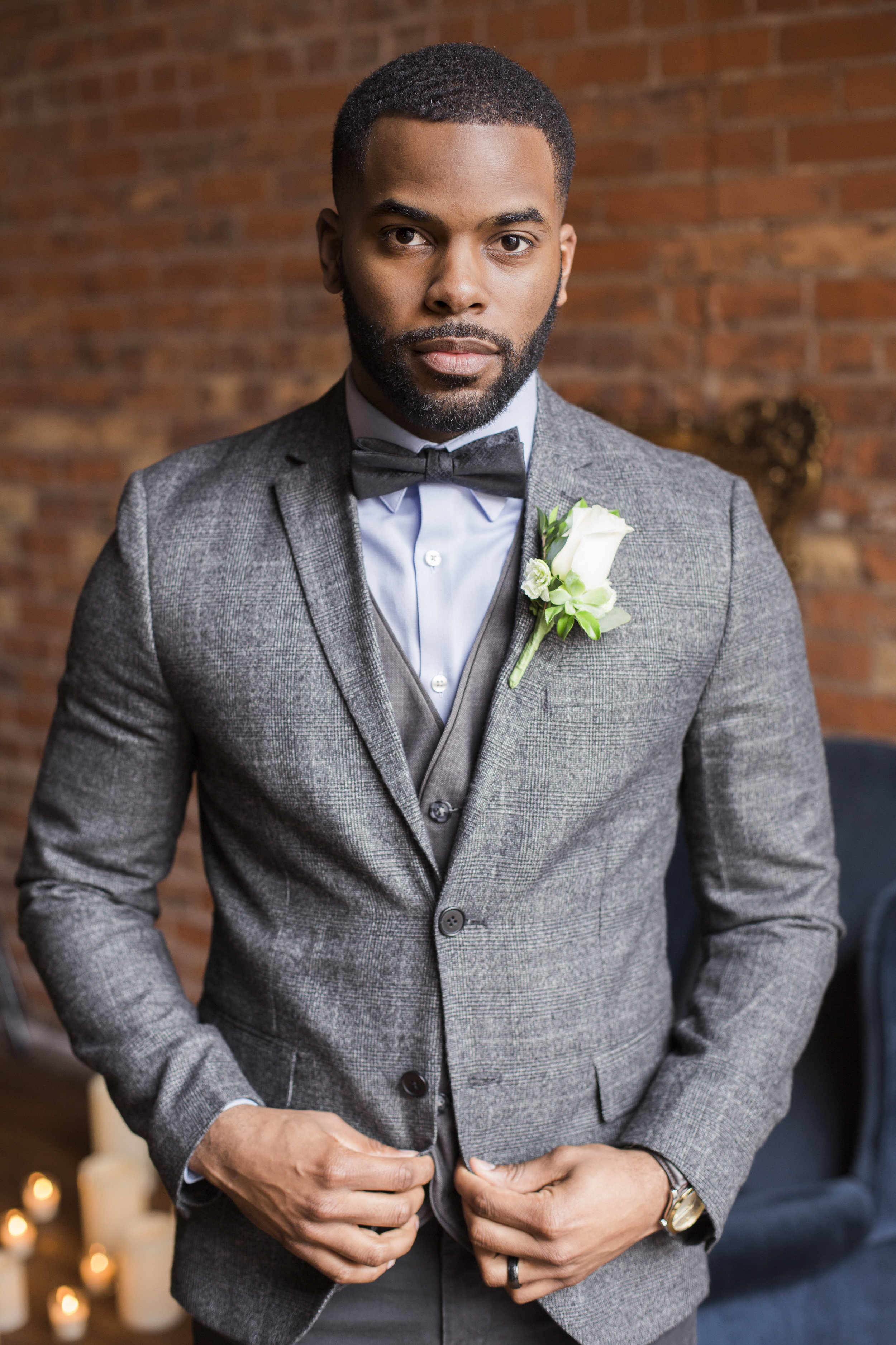 Whether your wedding day look is vintage or modern, we believe there are always ways to incorporate family heirlooms into your design. We loved including a gold ornate mirror and blue velvety chair to our couple’s portrait session to create an intimate and romantic setting for the pair.