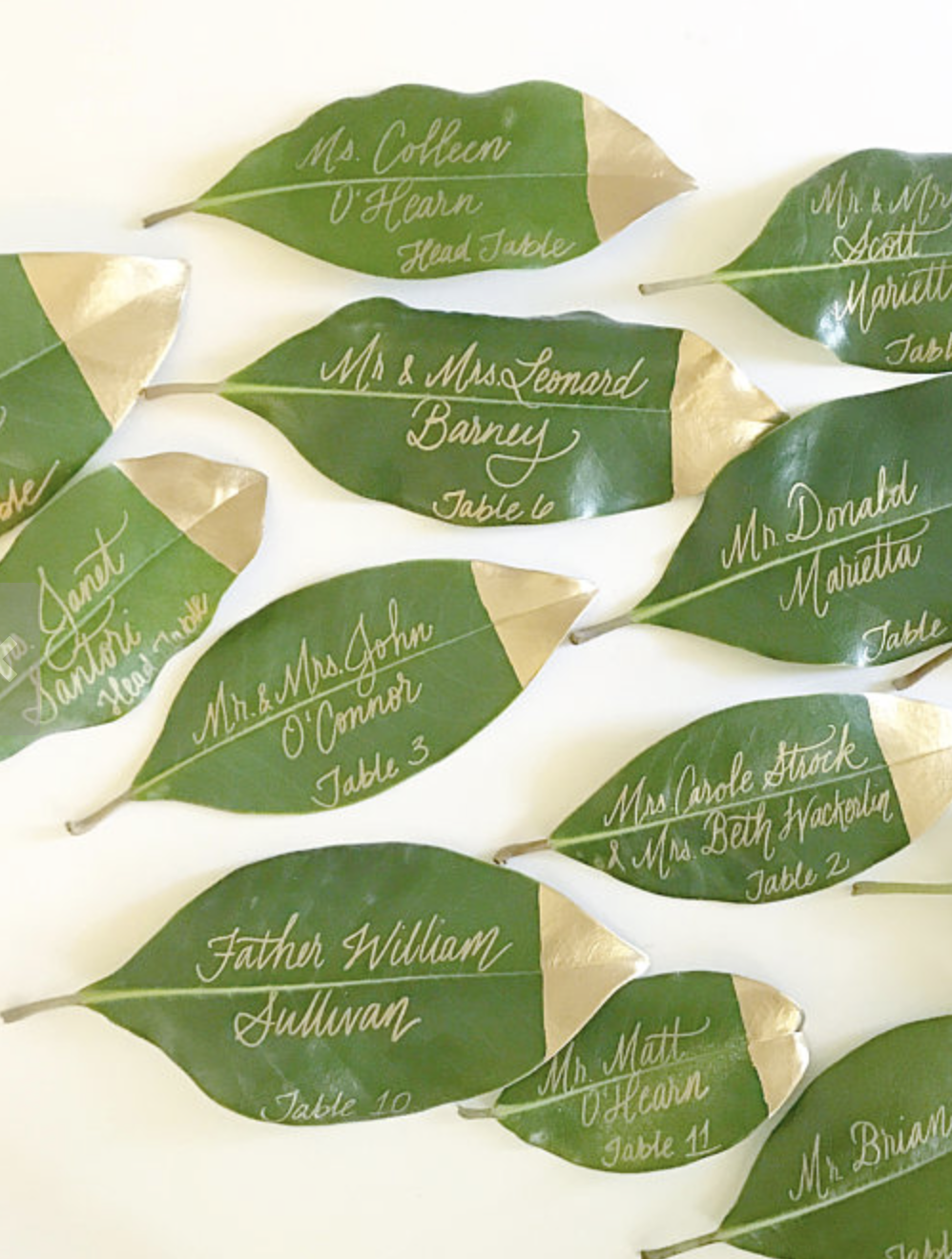 8. Gold dipped Magnolia leaf place cards starting at $2.25 each